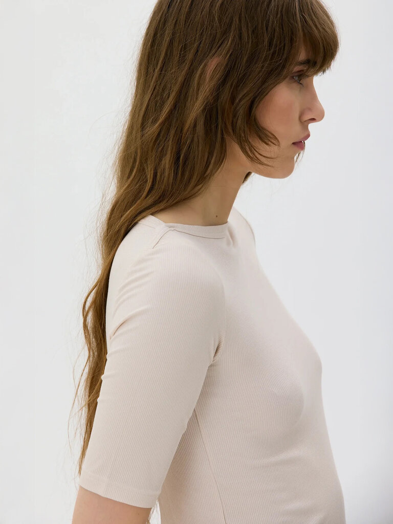 Designed for a close-to-the-body fit and crafted from soft, breathable TENCEL™ with added stretch, the Akila ribbed jersey top offers all-day comfort.