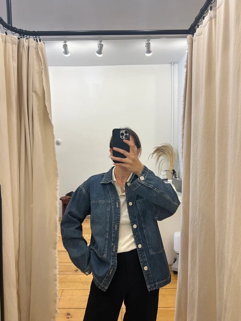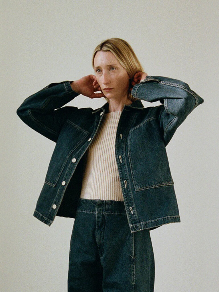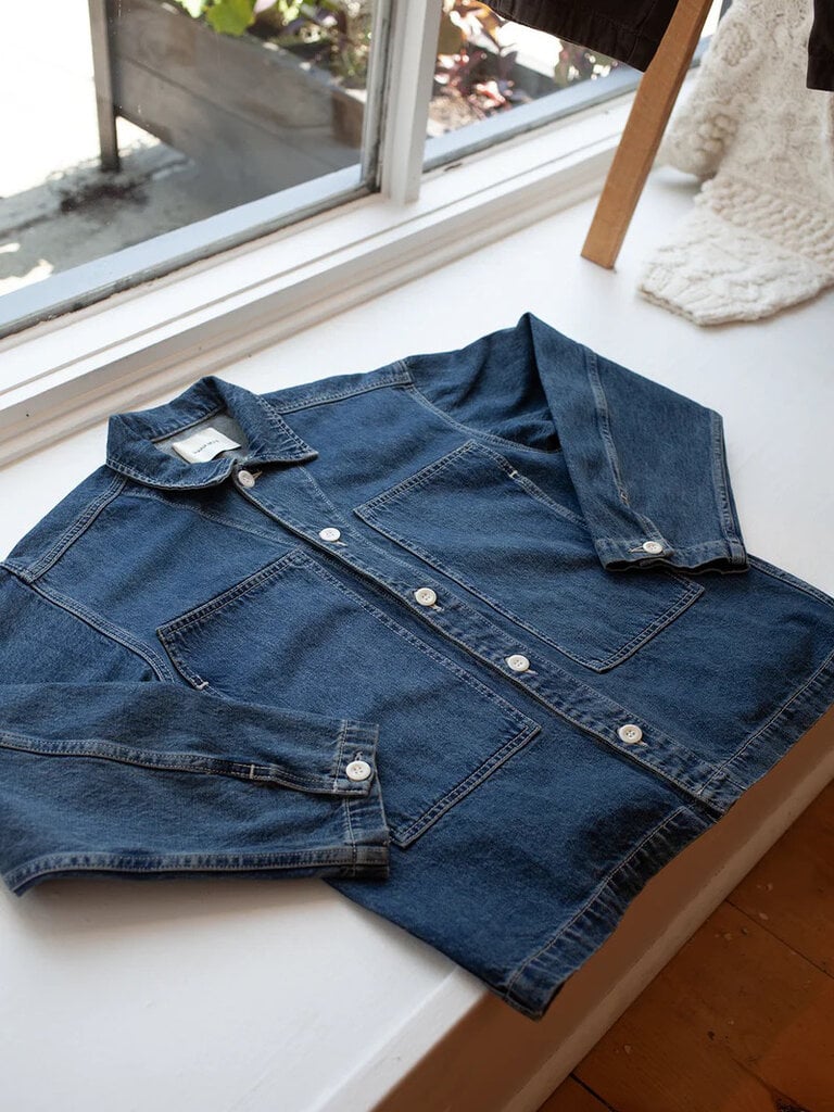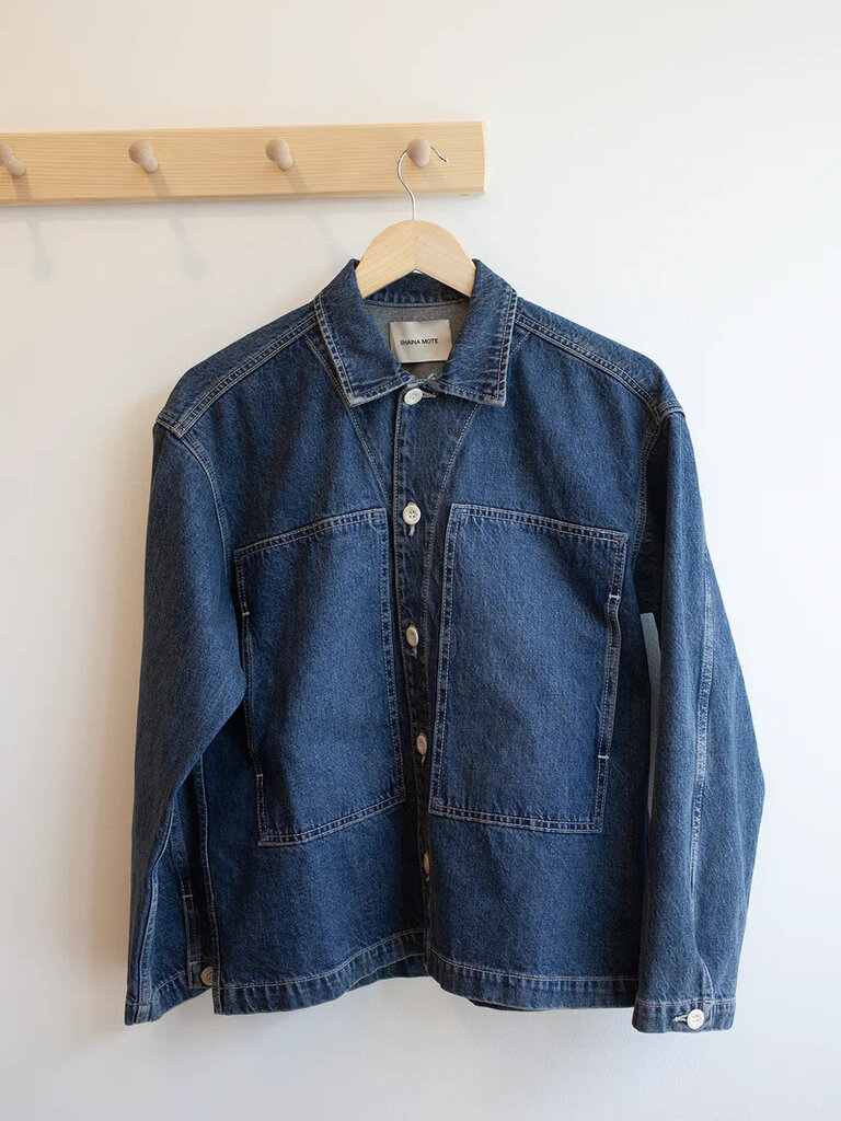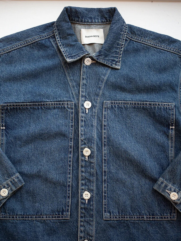 Shaina Mote's take on the classic Field Shirt with long military fatigue inspired pockets at front. Center front placket with corozo buttons, collar and boxy, easy fit.