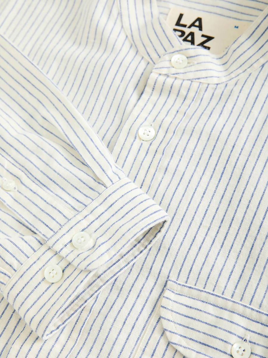 Vieira banded-collar shirt . Blue stripes