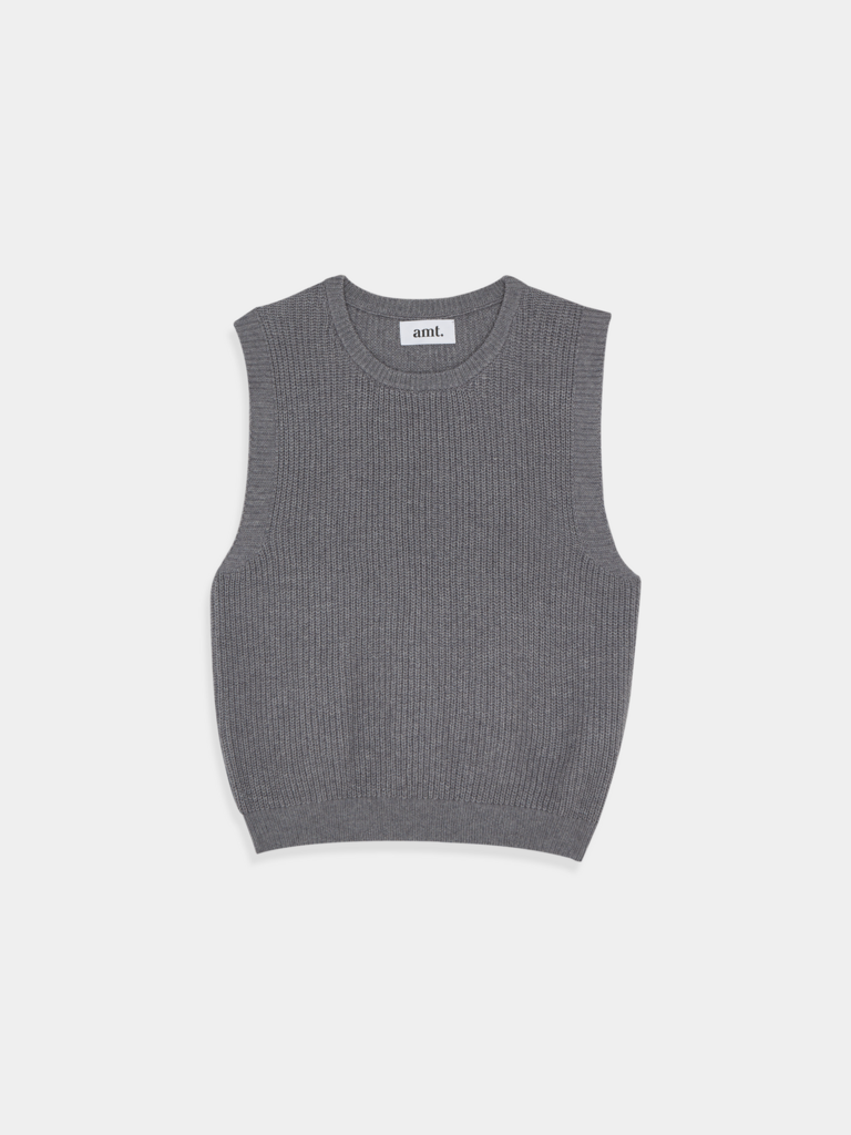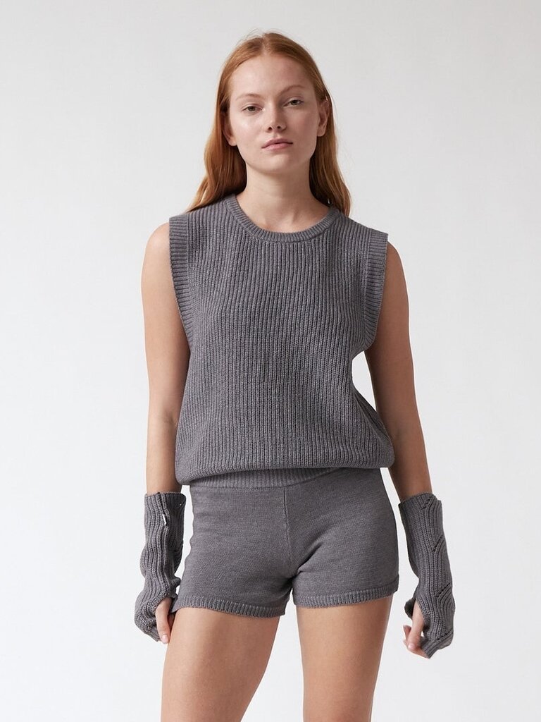Minimalist knitted cotton-wool vest. Designed for layering, this unisex piece blends warmth and breathability, making it ideal over shirts or tees for an elevated yet relaxed look.